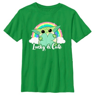 Boy's Star Wars: The Mandalorian Grogu St. Patrick's Day Rainbow Lucky and Cute T-Shirt