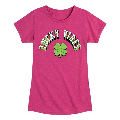 Girls' - Instant Message - St. Patrick's Day Lucky Shamrocks Filled Fitted Short Sleeve Graphic T-Shirt