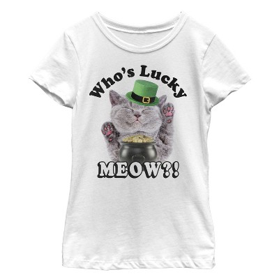 Girl's Lost Gods St. Patrick's Day Lucky Meow Cat T-Shirt