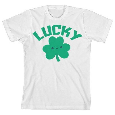 St. Patrick's Day Lucky Crew Neck Short Sleeve Youth White T-shirt
