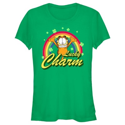 Juniors Womens Garfield St. Patrick's Day Lucky Charm T-Shirt