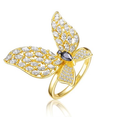 Elegant Gold Plated Butterfly Ring with Striking Black Cubic Zirconia for a Unique and Sophisticated Nature-Inspired Design