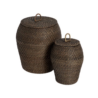 Decorative Hand-Woven Rattan Storage Baskets with Lids, Set of 2