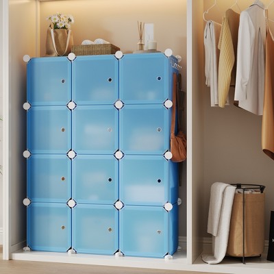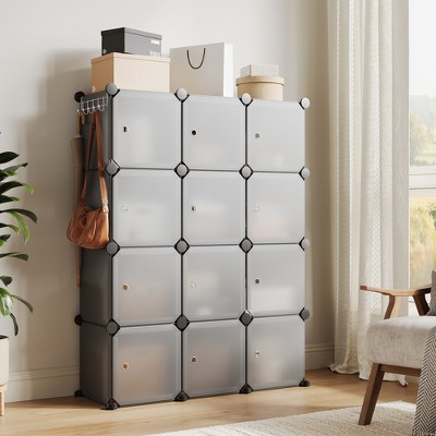Space-Saving Modular Shoe Storage Cabinet – 12-Cube Stackable Organizer with Doors, 4-Tier Portable Stackable Shoe Cabinet, For Bedroom, Living Room