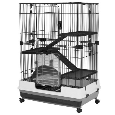 PawHut Small Animal Cage, Ferret Cage, Large Chinchilla Cage with Hammock & Heavy-Duty Steel Wire, Small Animal Habitat with Tray