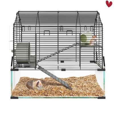 Kumasinova 31.5" Guinea Pig Cage with Detachable Storage Cabinet,Hamster Cage with Acrylic Panels,Multi-Level Small Animal Enclosure with Bridge