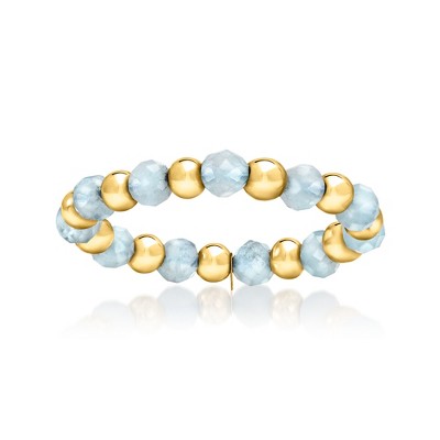 Pure Collection by Ross-Simons 1.20 ct. t.w. Aquamarine Bead Stretch Ring With 14kt Yellow Gold