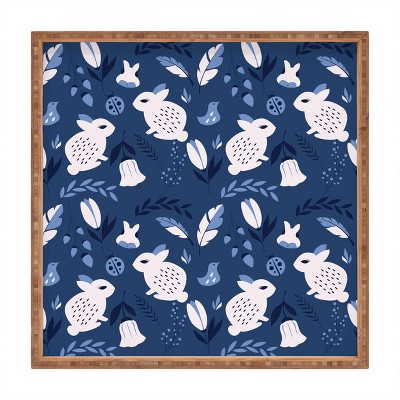 BlueLela Rabbits and Flowers Square Bamboo Tray - Deny Designs