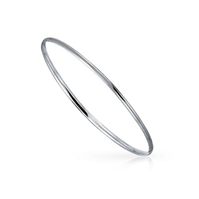 Bling Jewelry Plain Simple Dome Edge Layering Stacking Thin 2MM Shinny Sterling Silver Bangle Bracelet