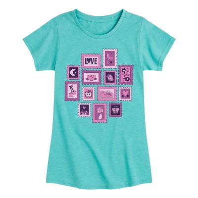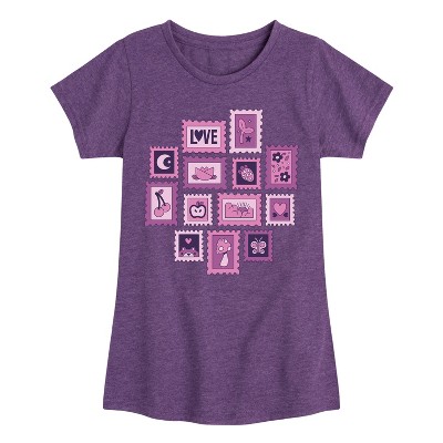 Girls' - Instant Message - Purple Stamp Grid Fitted Short Sleeve Graphic T-Shirt