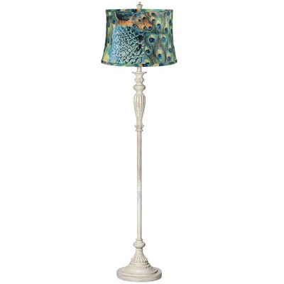 360 Lighting Shabby Chic Floor Lamp 60" Tall Antique White Washed Peacock Print Drum Shade for Living Room Reading Bedroom Office
