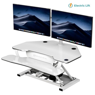 Mount-It! Electric Stand Up Desk Converter with Dual Monitor Arm, Motorized Desktop Standing Desk Riser with Monitor Mount for 2 Screens max 32"