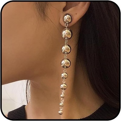Pearl Dangle Hoop Earrings - Dainty Gold Plated Drop Chain Hoops for Stacked & Multiple Piercings