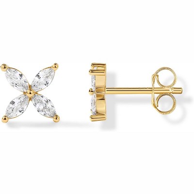 SmallRig 14K Gold Plated Celestial Stud Earrings, Cubic Zirconia with Sterling Silver Posts: Lightning Bolt, Moon, Star, Flower