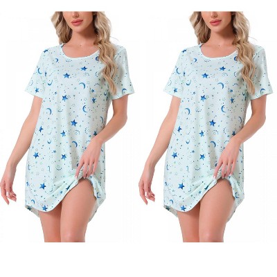 INSPIRE CHIC Women's 2 Pcs Curved-Hem Crew-Neck Striped Short-Sleeve Tee Dress Sleepshirt
