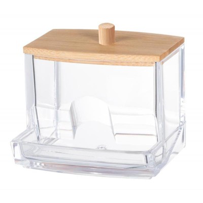 Clear Cotton Swab Dispenser with Bamboo Lid—Acrylic Qtips Dispenser, Easy-Access, Cotton Swab and Cotton Ball Holder