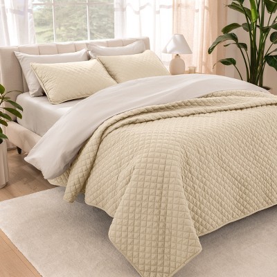 Quilted Coverlet and Shams Set Damask Square Herringbone Pattern - Becky Cameron