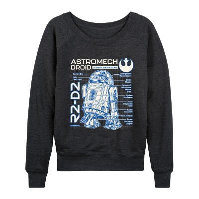 Women's - Star Wars - R2D2 Blueprint Lightweight French Terry Wide Neck Long Sleeve Graphic Shirt