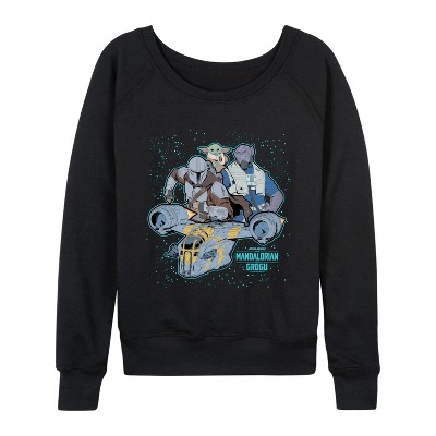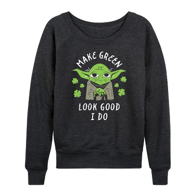 Women's - Star Wars - Yoda Brush Lightweight French Terry Wide Neck Long Sleeve Graphic Shirt