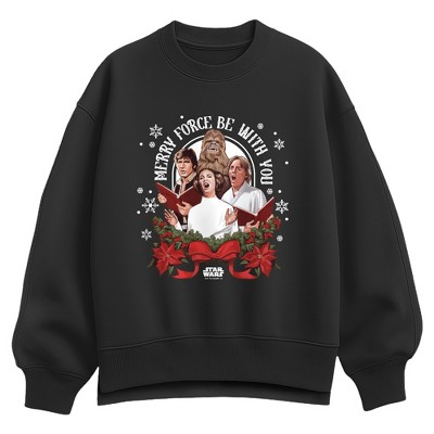 Women's - Star Wars - Force Strong Family Lightweight French Terry Wide Neck Long Sleeve Graphic Shirt