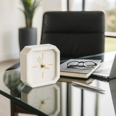Decorative Marble Octagon Clock for Living Room Decor - Home Decor Accent for Bedroom, Dorm, and Kitchen Counter