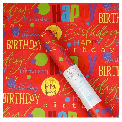 Bows And Sparkles 96"x30" 'Happy Birthday' Script Gift Wrapping Paper Red