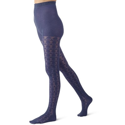 Memoi Women's Textured Cotton Rich Inverted Crochet Fashion Tights