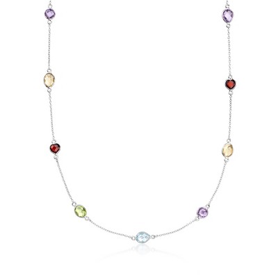 Bella Silver Sterling Silver Bezel-Set CZ & Bead Station Necklace - Emerald - Green - 16+2 Inch