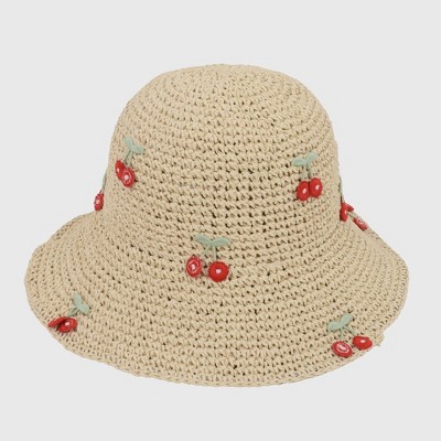 Anna-Kaci Women's Straw Bucket Hat with Cherry Embellishments