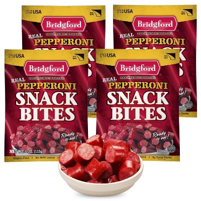 Bridgford Pepperoni Snack Bites 4 oz - Ready-to-Eat Snacks for On-the-Go Snacking - Pork and Beef Pepperoni Bites with Zero Carbs