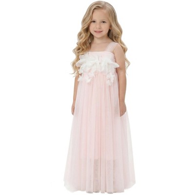 2Bunnies Girls' 3T-8Y Sleeveless 3D Petal Flower Tulle Maxi Dress