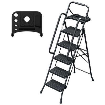 5-Step Foldable Ladder with Anti-Slip Wide Pedals, Heavy Duty 400lbs Capacity Step Stool for Home Kitchen Garage Office Indoor Outdoor, Black