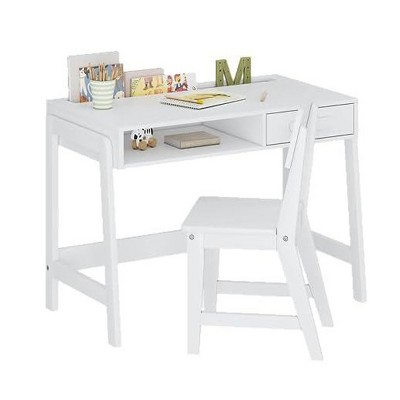 Kids Desk and Chair Set with Storage, Child Study Table for Bedroom or School, Gift for Children Ages 3–12, White