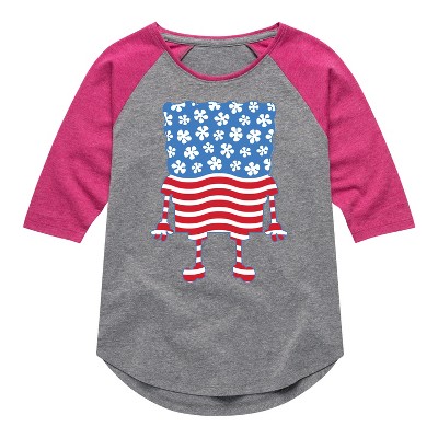 Girls' - SpongeBob SquarePants - Silhouette Stars Stripes Shirt Tail Raglan Graphic T-shirt