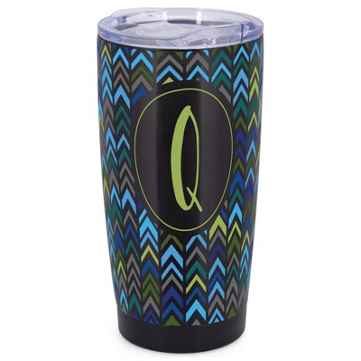 Elanze Designs Q Monogram Herringbone Arrows Wrap-Around Design 20 Ounce Stainless Steel On-The-Go Coffee Mug, Thermal Travel Tumbler with Leak