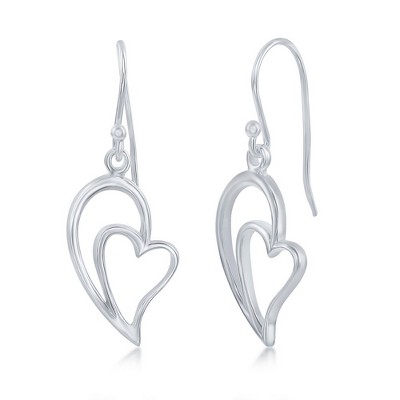 Bella Silver Sterling Silver Heart Within Half a Heart Dangling Earrings - Silver