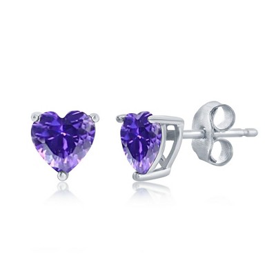 Bella Silver Sterling Silver 6MM Amethyst "Feburary" Heart Perciosa Crystal Earrings - Purple