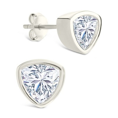 SHINE by Sterling Forever Sterling Silver Trillion Cut Bezel Set Stud Earrings