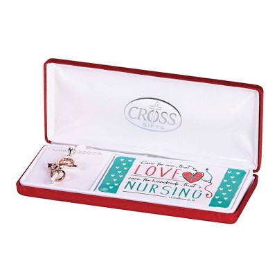 Dicksons Nursing Love Care For Hundreds Stethoscope Stone Charm Cross Pendant Women's 18 Inch Silver Plated Stainless Steel Everyday Necklace in