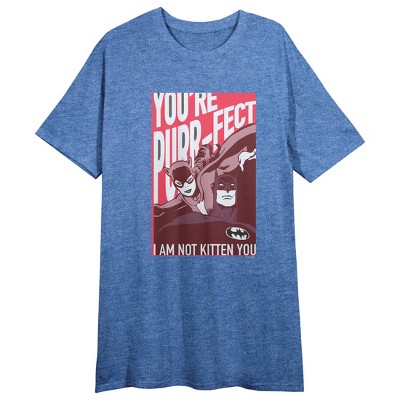 Batman and Catwoman "You're Purr-fect" Valentine's Day Women's Blue Heather Short Sleeve Night Shirt