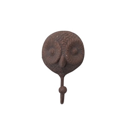Storied Home Rustic Carved Cast Iron Owl Wall Hook, Distressed Brown