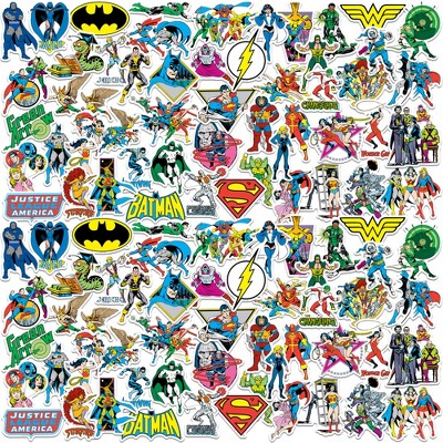 Justice League Vintage Super Powers Collection 100Ct Vinyl Large Deluxe Stickers Variety Pack