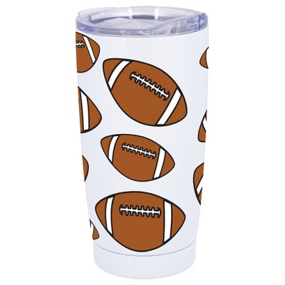 100 North 20 Ounce Stainless Steel On the Go Travel Tumbler With Push Top Lid, Soccer Ball White