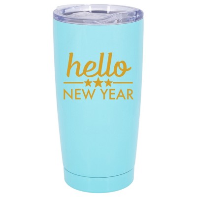 100 North 20 Ounce Stainless Steel On the Go Travel Tumbler With Push Top Lid, Happy New Year Blue