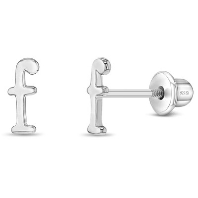 Girls' Polished Initial Letter Initial Screw Back Sterling Silver Earrings - In Season Jewelry