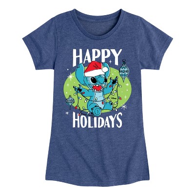 Girls' - Lilo & Stitch - Merry Stitchmas Fitted Short Sleeve Graphic T-Shirt