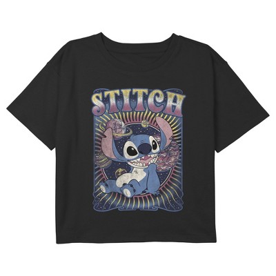 Girls' - Lilo & Stitch - USA Stitch Drawing Short Sleeve Boxy Graphic T-Shirt