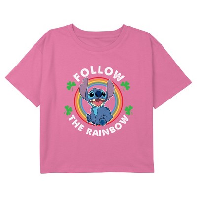 Girls' - Disney - Stitch Pop Flowers Short Sleeve Boxy Graphic T-Shirt