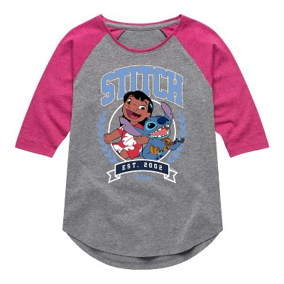 Girls' - Disney - Stitch Collegiate Group Shirt Tail Raglan Graphic T-shirt