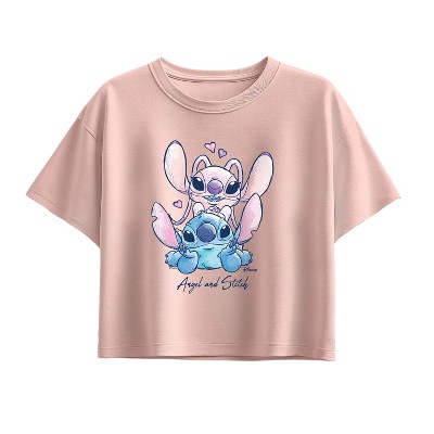 Girls' - Lilo & Stitch - Stitch And Angel Airbrush Short Sleeve Boxy Graphic T-Shirt